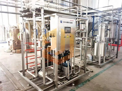 啤酒殺菌時利用高壓啤酒泵送入二段式板式換熱器預(yù)熱段,與已完成殺菌的熱啤酒預(yù)加熱至62℃左右,再經(jīng)過高溫保溫段用85℃的熱水將啤酒加熱到78℃,在保溫管段保溫30秒后達(dá)到巴氏殺菌單位25pu值,然后再被預(yù)熱的冷啤酒降溫至4℃,進(jìn)入緩沖罐準(zhǔn)備灌裝。板式殺菌機(jī)組采用高精度的數(shù)控調(diào)節(jié),自動控制和安全保護(hù)措施,并可與CIP系統(tǒng)配合進(jìn)行設(shè)備自動清洗。